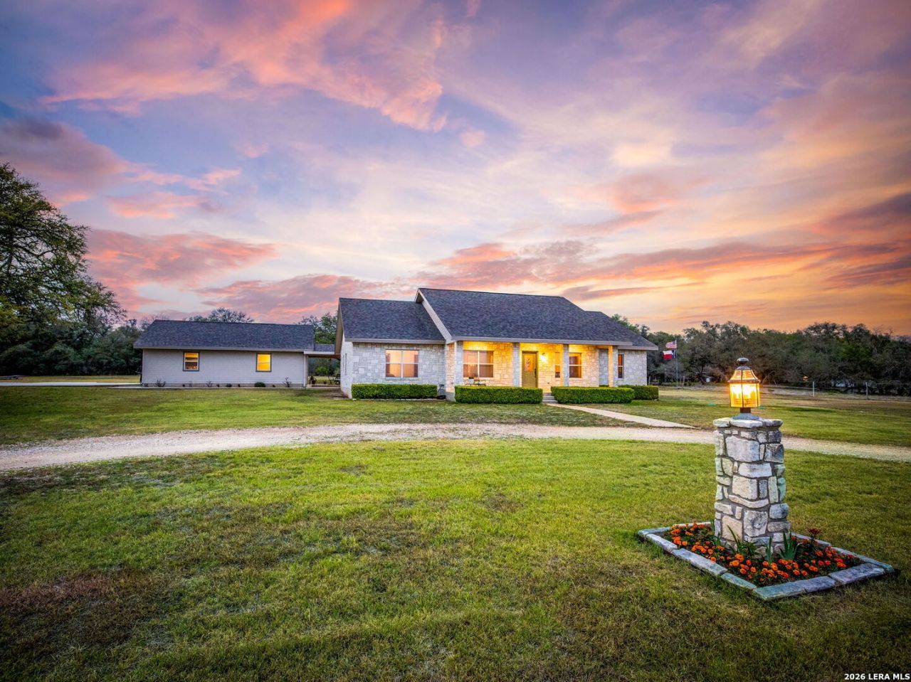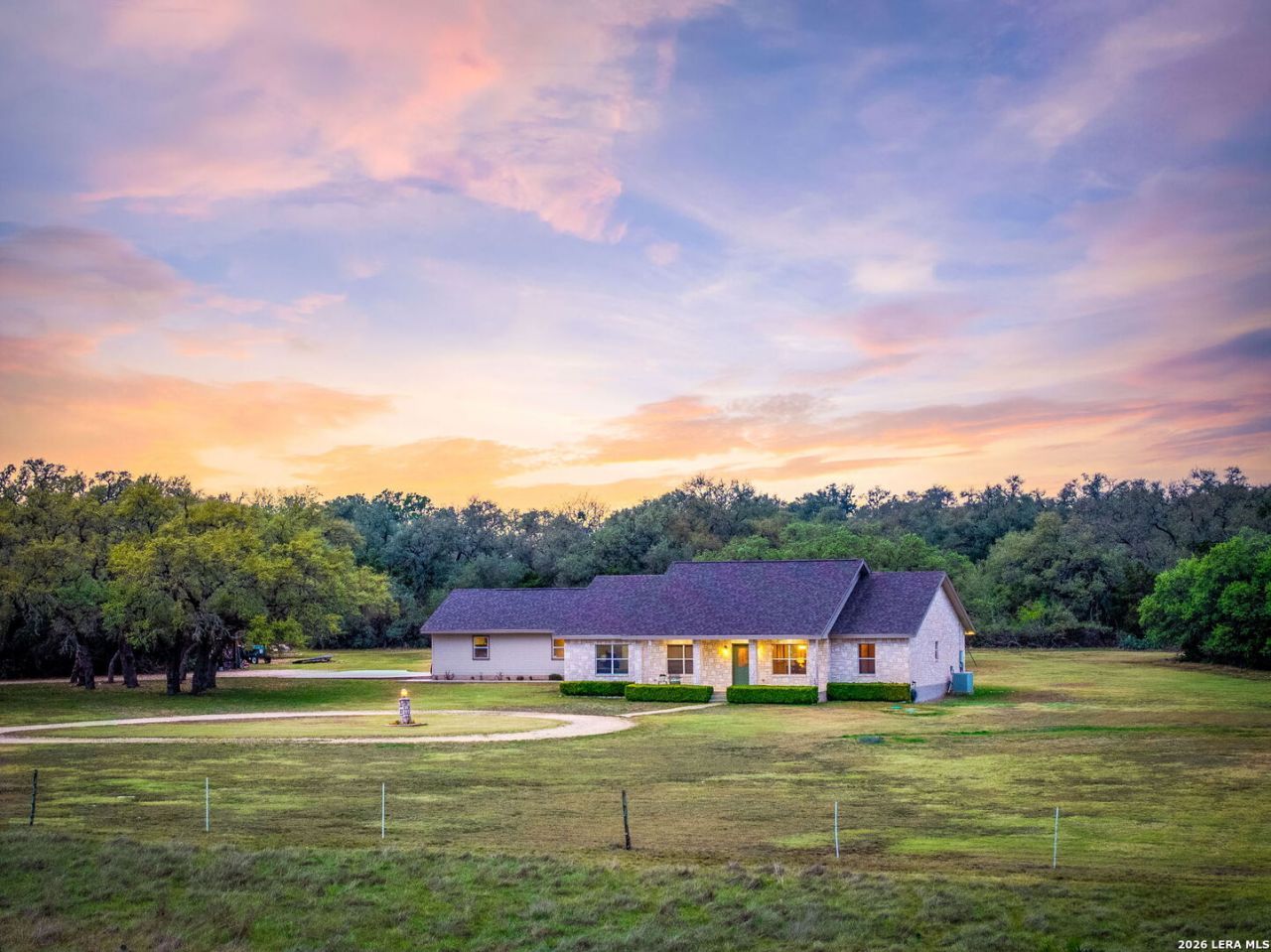 Private 20 acre ranchette on the edge of the Texas Hill Country. Private gated entry, mature oak trees, fenced and cross fenced, sunset views, wildlife agricultural exemption, and only minutes away from Canyon Lake, Gruene Hall, and downtown New Braunfels. Relax on the back patio or under the pergola while admiring your majestic oak trees and abundance of wildlife. The island kitchen boasts a breakfast area, double oven, breakfast bar, cooktop, and built-in wine rack. The living area is open to the dining/kitchen and features a wood burning fireplace with custom built-ins. The owners suite features a full bath with walk-in shower, jacuzzi tub, large closet, and updated tile flooring. The detached 936 sq ft garage includes a 19 x 12 workshop area. This is the perfect place to escape and enjoy the quiet country surroundings.