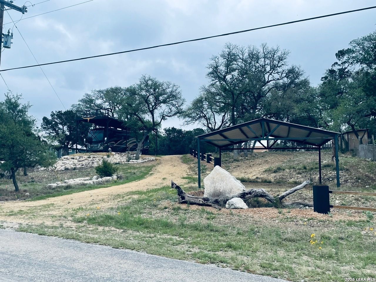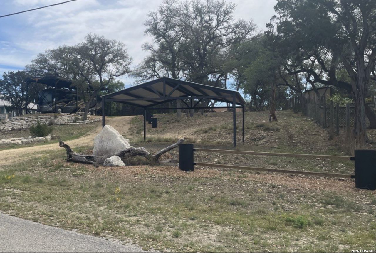 Unique unrestricted landscape. .84 acres ready for your dream home or shared RV lots. Installed 400 amp meter base that is not hooked to electricity, 2 stall carport, RV port with staircase to upper sun deck with a grand view of Canyon Lake and the Texas Hill country. Owner has a recent quote for an aerobic septic system.