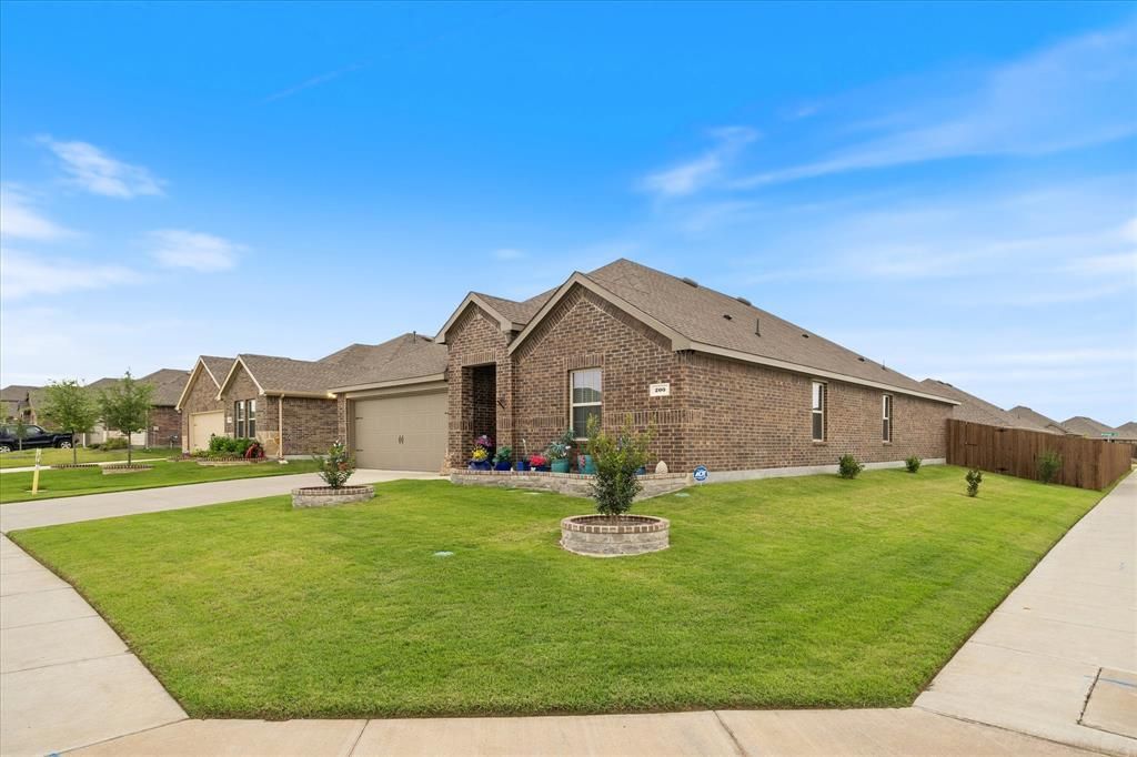 SELLER OFFERING 8K TOWARD CLOSING COSTS WITH ACCEPTABLE OFFER! Stunning, move-in ready home loaded with upgrades in the highly sought-after Trailstone community, ideally situated on a corner lot. This well-designed 4-bedroom, 2-bathroom home offers a spacious split-concept floor-plan perfect for both everyday living and entertaining. The kitchen is generously sized with abundant cabinetry and counter space, featuring granite countertops, an upgraded backsplash, stainless steel gas appliances, and enhanced cabinet storage with built-in shelving and racks for pots, pans, and cookware. Luxury vinyl plank flooring flows throughout the main living areas, and ceiling fans are installed in all bedrooms for added comfort. The oversized primary suite provides a versatile space large enough for a sitting area or home office. The ensuite bathroom includes dual sinks, a separate shower with bench seating, built-in shelving for storage, and a spacious walk-in closet. Enjoy outdoor living in the oversized backyard complete with a covered patio, ideal for relaxing or entertaining. The garage is upgraded with built-in shelving for additional storage. The front yard showcases attractive landscaping with a decorative stone border. Residents of Trailstone enjoy access to resort-style amenities, including swimming pool, walking trails, and playgrounds. Conveniently located within the community, Kirkpatrick Elementary adds to the appeal. Just minutes from I-30, offering easy access to shopping, dining, and everyday conveniences.